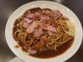 ひき肉とニラもたっぷりです。ニラは後からのせているのでしょうか?生ですね。ひき肉は大きめのゴロッとした感じのものになっています。